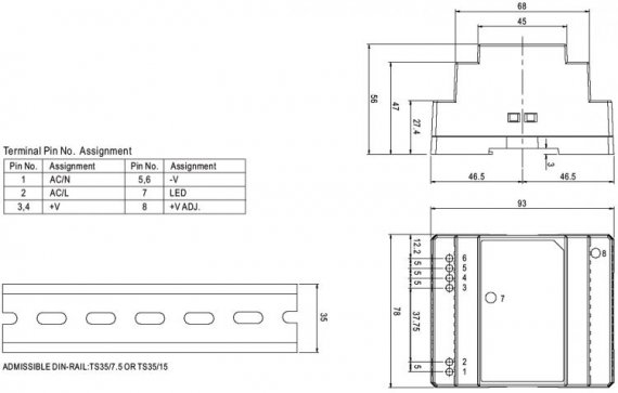 Источник питания предназначен для монтажа на DIN-рейку. ИП питается от однофазной сети переменного тока или от источника постоянного напряжения. Преобразователь имеет один выходной канал, выходное напряжение которого регулируемое в пределах ±10%. Электрическая прочность изоляции ИП составляет не менее 3000В, имеется защита от короткого замыкания и перенапряжения по выходным цепям, защита от перегрева, мягкий пуск с ограничением пускового тока.