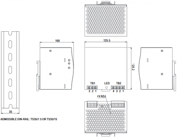 - Способ монтажа - На DIN-рейку TS35/7.5 или TS35/15